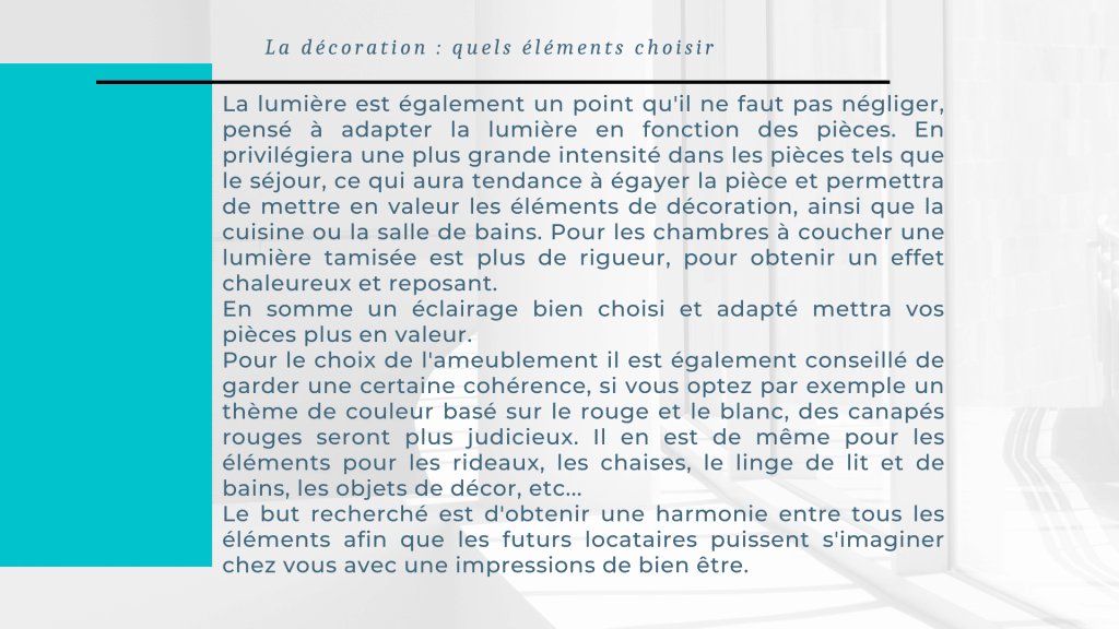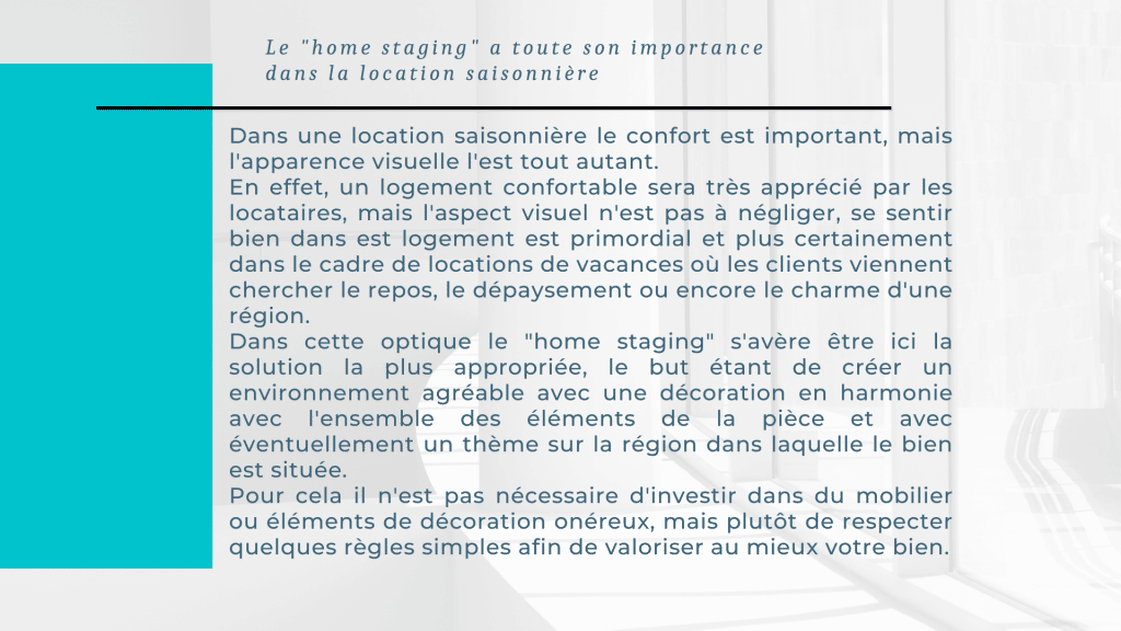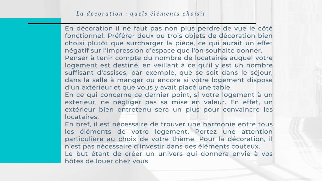 Dans une location saisonnière le conforte est très important, mais l’apparence visuel l’est tout autant.