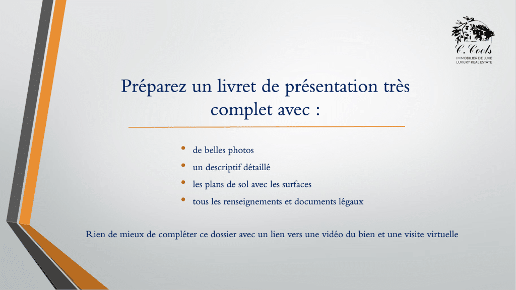 • n’oubliez pas le “homestaging” si nécessaire pour mettre votre bien en valeur